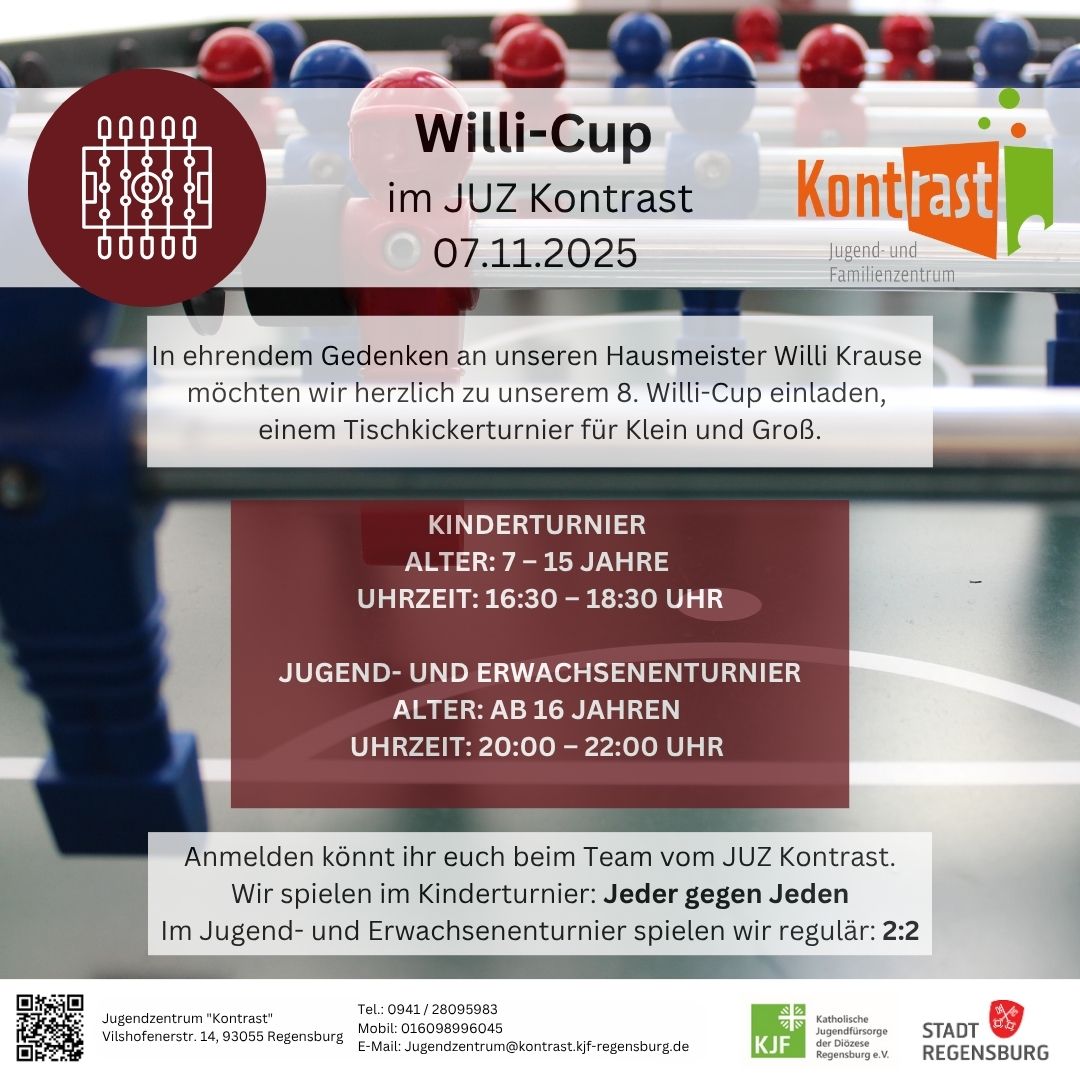 In ehrendem Gedenken an unseren Hausmeister Willi Krause möchten wir herzlich zu unserem 8. Willi-Cup einladen, einem Tischkickerturnier für Klein und Groß.